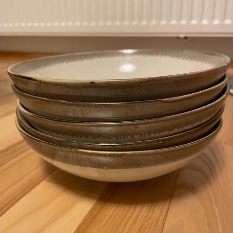 Kauniit vaalean siniset kulhot ja tarjoiluastia. Väri vaaleampi kuin kuvassa. Materiaali mielestäni lasitettua keramiikkaa. Nämä ostettu Askosta. Kulhojen halkaisija 14cm ja tarjoiluastian 21cm. Hinta yhteensä 15eur