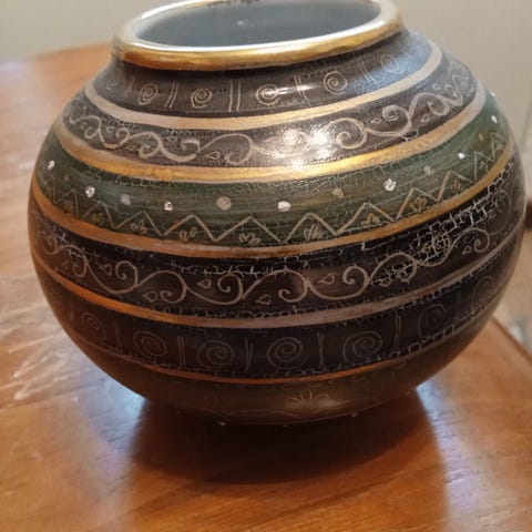 Ard deco tyylinen ruukku. Korkeus 21,5cm ja halkaisija 18cm.