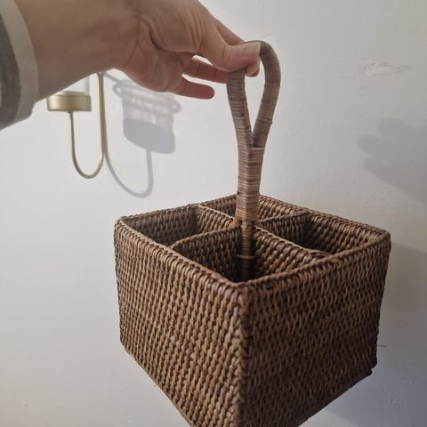 Ikean Bygel -sarjan kori. Korin saa roikkumaan seinätankoon.