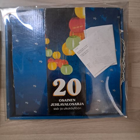 Pallovalaisimet sähköjohdolla ulkokäyttöön, mukana erivärisiä vaihdettavia sisälamppuja.