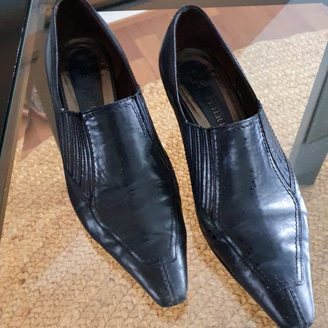 Peter Kaiserin juhla-avokkaat. Patinoitu kulta, sisus vaalean sininen nahka. Päällinen, vuori ja pohja nahkaa. Ollut kaksissa juhlissa. Korko 6 cm. Korkolaput uuden veroiset, nahkainen ulkopohja saa jälkiä heti ensimmäisen käyttökerran jälkeen. Koko 3, vastaa 36. Nouto/postitus. Pk.ostajalle.