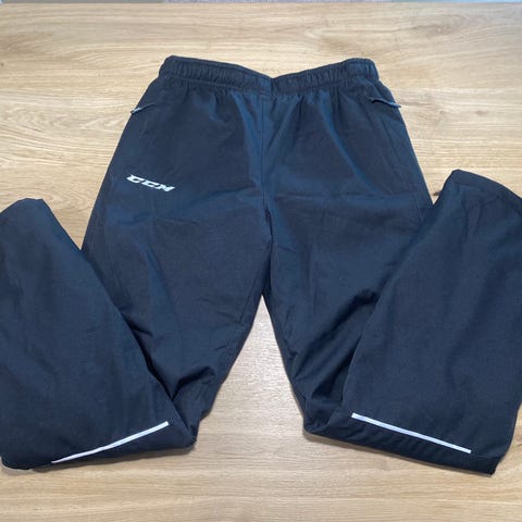 Todella hyvässä kunnossa oleva musta toppapuku, mukana vähän keltaista ja valkoista. Merkki CCM, koko (miesten) XS. Pitkät vetoketjut lahkeessa, menee hyvin esim luistimien päälle. Tasku myös hihassa.