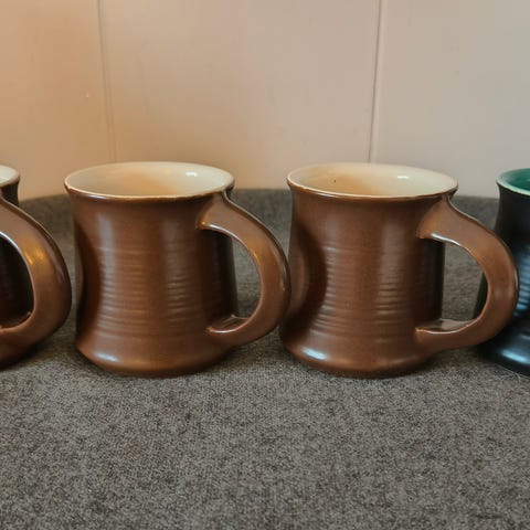 Kupittaan savi kolpakot, tuopit 6kpl hyväkuntoiset tekstinä lukee Hyvä sahti aina janottaa.Pohjassa tarrassa lukee piispa Henrik koriste Kupittaan savi Oy yhdestä tuopista pohjasta puuttuu tarra.