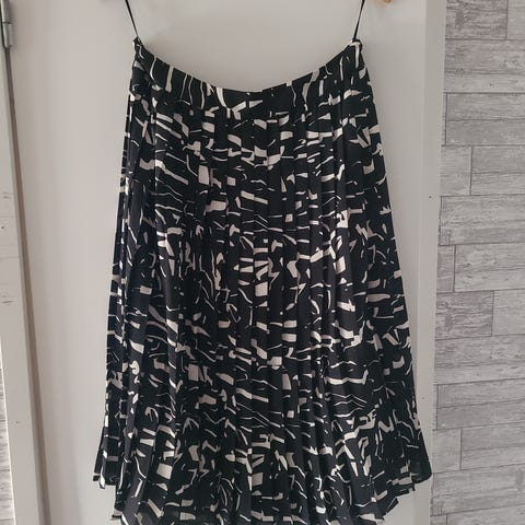 Nanso Oy:n punainen hame valkoisilla kukilla. Hameessa vuorikangas. Koko L. Käyttämätön.