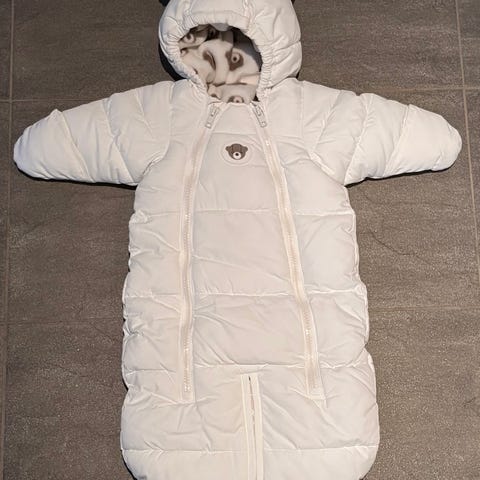 Siisti ja ehjä, neulottu makuupussi pienelle vauvalle, jossa umpinaiset hihat ja huppu. Edessä nepparit. Sopii pienelle 50-60 cm kokoiselle. Väri turkoosi / valkoinen. Vaunuihin hyvä unipussi.