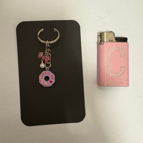 Uusi ja käsintehty donitsi kaulakoru, polymeerimassasta. Metallirenkaat nikkelittömät. Säädettävä puuvillanyöri. Toimituskulut yhden postimerkin verran eli 2,75e. Maksu tavallisena tilisiirtona (ei toridiili).