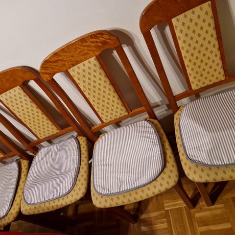 Keittiön tuolien istuinpäälliset 6 kpl, leveys 39cm, pituus 40cm, paksuus 3,5vm, kuin uudet. nouto , käteinen