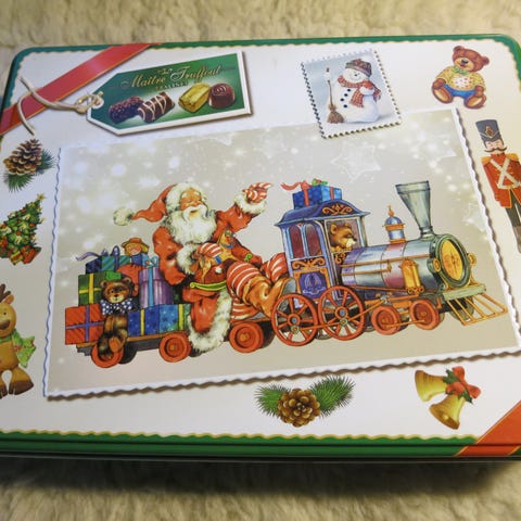 Myydään kaunis jouluomena peltirasia