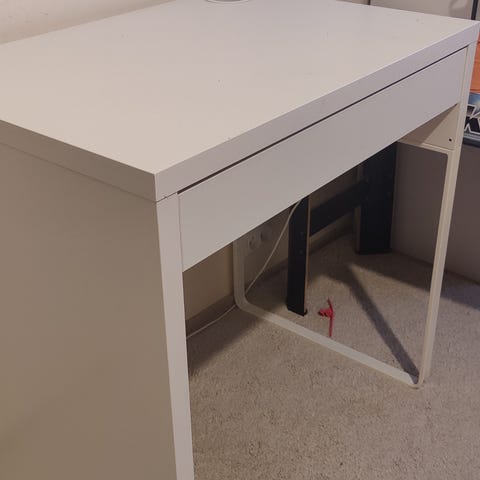 Pöytä on hyvässä kunnossa, kuvissa näkyy vain kevyitä käytön jälkiä — ei mitään merkittävää.