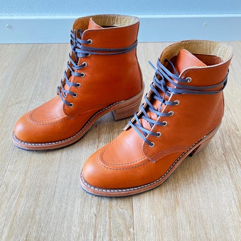 Kuten pohjista näkee, käytön jälkeä ei käytännössä ole. Ainoa mainitsemisen arvoinen asia on pieni tarha varressa sisäpuolella, josta erillinen kuva. Kengät ovat goodyear-rakennetta, eli pohjat voidaa vaihtaa useita kertoja uudelleen suutarin toimesta. Nahka Red Wingin kengissä on tunnetusti erittäin tuhtia ja laadukasta ja kestää erittäin hyvin Suomen kosteita olosuhteita. Näitä voi pitää vaikka taivaalta sataisi tiskirättejä.