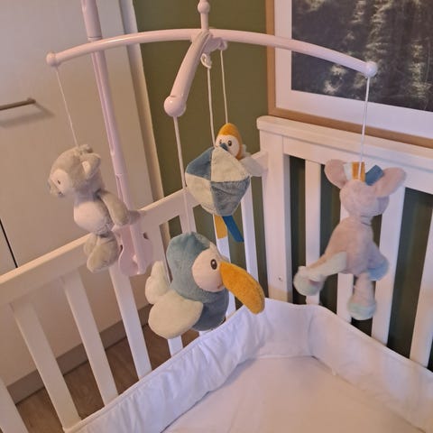 Cloudberry Castle musiikkimobile, pupu. Alkuperäuspakkauksessa. Vedettävä. Mobile pyörii ja soittaa musiikkia.