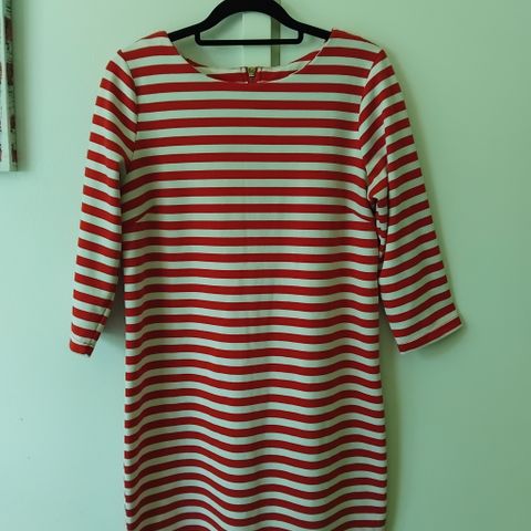 Ruskea Vilan raitamekko, jossa ”nahkaiset” taskut edessä. Muutaman kerran käytetty eli erittäin hyvässä kunnossa. Säilytyksestä ryppyjä, jotka näkyy kuvissa.