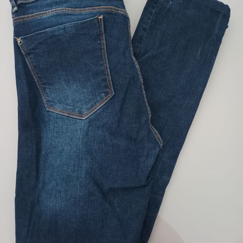 Uudenveroiset valkoiset ei capri mutta lyhyempilahkeiset valkoiset joustavahkot House-farkut, lahje loppuu muutama senttiä ennen nilkkoja. En löytänyt kokolappua, mutta arvioisin, että koko M tai pieni L, koska 163-cm pitkälle ja s-kokoiselle ihan liian löysät, mutta L/42 kokoa kantavalle hieman liian pienet. Vyötärö kuvan punaisen viivan tyyliin pois päältä mitattuna noin 80cm.