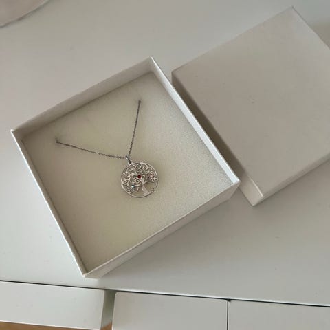 Elämänpuuriipus, turkoosi howliitti-pisarakivi, pituus 4,5 cm, ihana ohut pallo -teräsketju 50 cm, h. 14 € + pk 2,75