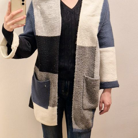 Kirjava neulemekko Lindex -merkiltä. Kirjava väritys, jossa valkoista ja mustaa kudetta sekä ohutta hopeista kimallelankaa. Neule on paljon käytetty, joitain nyppyjä yms löytyy, mutta yleisilme on siisti. Taloudessa ei tupakoida tai ole lemmikkejä. Toimitus Toridiili.