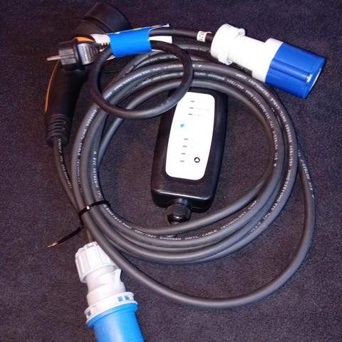 Säädettävä latausteho 1x10a tai 1x16a. Type2 latauspää ja 1x16 CEE pistoke. 1x16a pistorasia (ns. karavaanipistorasia) mukaan tarvittaessa.