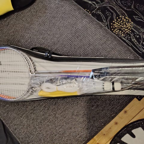 Uusi Stiga sulkapallosetti. Kaksi mailaa, pallot ja verkko.