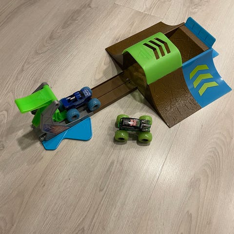 Iso Monster Jamin Megalodon - kauko-ohjattava auto, voi ajaa sisällä tai ulkona, ladattava, kauko-ohjain toimii pattereilla, takana yksi muovinen tukipylväs katkennut, (kuvat viimeisinä) voi halutessaan teipata, toimii normaalisti auto, hintapyyntö 70 e, alkuperäinen hinta 210 e.