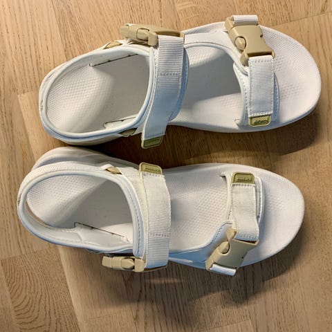 Vähälle käytölle jääneet Icepeak-sandaalit. Koko 40. Remmikiristys kengän päällä.