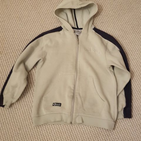 Punainen Adidas huppari. Tahra ja pieni reikä hihansuussa. Siisti käytetty kunto.H.2e