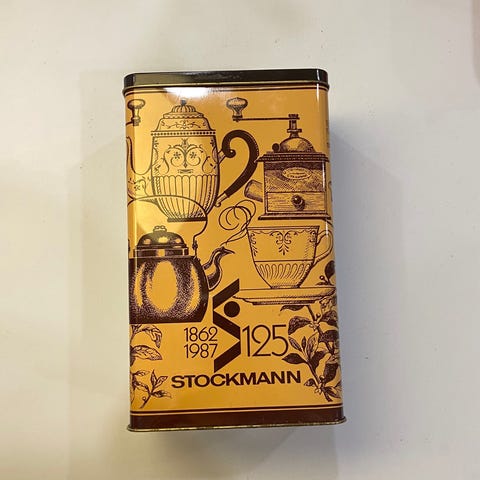 Kahvipurkki Stockmann 125 vuotta. Vaihtuu myös vaikka kahvipakettiin.
