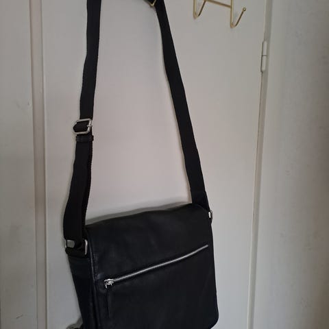 Marimekon nahkainen Urbaani-laukku. Normikoko. Hyvässä kunnossa, mutta käytössä toki ollut eikä ihan uudenveroinen. Hihnassa pieni "nirhauma", joka kuvassa, pohjassa myös pienet kulumat parissa kulmassa (kuva). Mustaa jämäkänpehmeää nahkaa. Uutena yli 200€