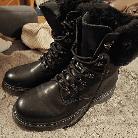 Täysin uudet, käytetty kerran. Sisäpuolella ohut karvavuori. Ovh 110€.