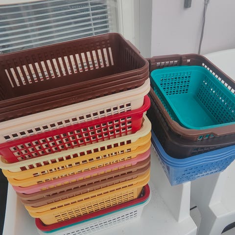 Myydään käytännöllinen säilytyssetti / järjestelijä esimerkiksi työpöydän tavaroille, lehdille tai papereille. Säilytysjärjestelmä on kolmeosainen joista pienimmässä yksi väliosa (pienempään osaan saa esimerkiksi kynät pystyyn). Osat ovat tukevasti kiinni toisissaan tarrakiinnityksellä.