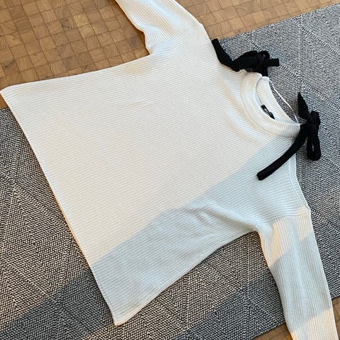 Siisti, muutamia kertoja pidetty neule. Ohut, hieman läpikuultava. Haitua ja nukkaisuutta paikoitellen. Hajusteettomasti pesty.