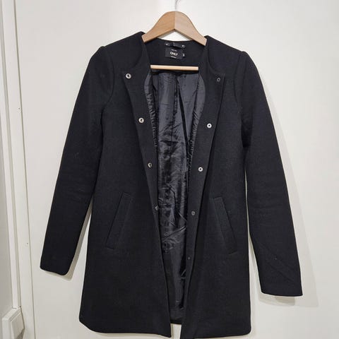 JDY-merkin musta kevyt siisti takki koossa XS. Hyväkuntoinen, joitakin langan purkaumia. Kevyet olkatoppaukset.