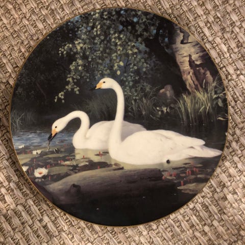Joutsenpari lammella -lautasen halkaisija 30cm, muiden 20cm.