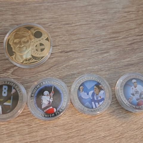 Myydään Teemu Selänne suomalainen kiekkolegenda mitalit. Kokoelma on täysinäinen ja se myydään vain kokonaisena. Aitoustodistus ja mitalista kertova A4 on kaikki tallella.