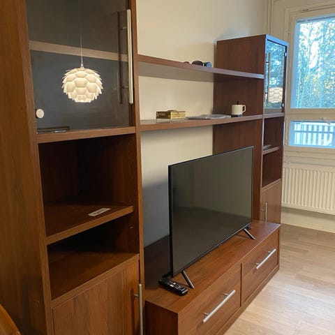 Myydään Toni kirjahyllystö sisältäen stereotasot ja vitriinit, liika tilaa vievänä ja tarpeettomana. Huippukunto. Voi ostaa vain muutaman modulin myös, jolloin saa pienemmän kokonaisuuden. Todella edullinen kuntoon nähden. Vankkaa MDF-levyä, kirsikan värinen. Ostettu aikoinaan Vepsäläinen- huonekaluliikkeestä uutena. Huom ! Kuljetus ei sisälly hintaan, joten varaathan tilavan paketti auton, jos päätät ostaa. Voi käydä myös etukäteen tutustumassa. Huom! Vain käteismaksulla. Soitathan siten, että numero on näkyvissä. Ilmoituksessa näkyvä hinta on kaikkien modulien hinta yhteensä, joten halvalla lähtee!