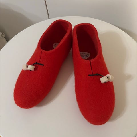 Huopatehdas J. Alhon harmaat huopanilkkurit. Koko 38. Sisämitta 24,5 cm. Paksu kumipohja. Oil resistance. Made in Finland.