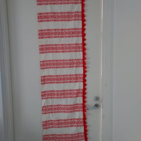 Kaksi kimaltavaa hopeaa verhokappaa. Yhden koko 250cm x 55cm. Myydään yhteishintaan 20€ molemmat tai 14€/kpl.