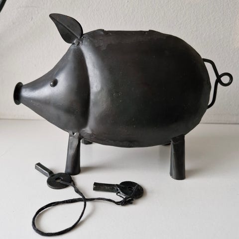 Iso säästöpossu, Pomme-pidoun hienosti kuvioitua keramiikkaa. Pinkki-punainen.