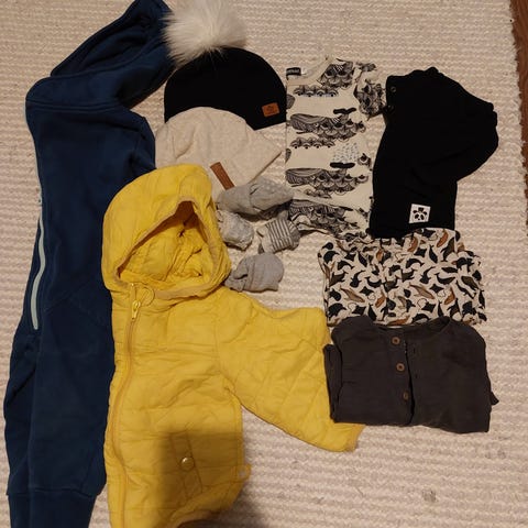 Vaatepaketti vauvalle. Kaikki oikein hyväkuntoisia vaatteita ja yksi käyttämätön body.