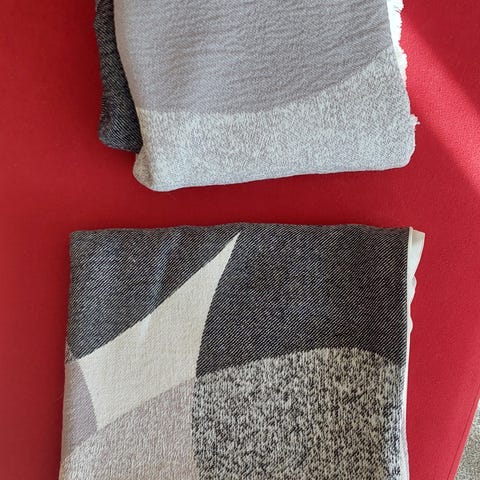 Käyttämätön vihreäsävyinen torkkupeitto. Puuvillaa.
