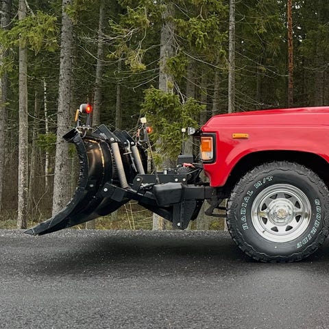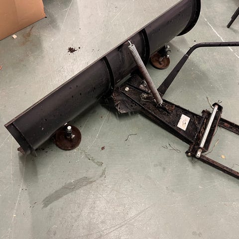 Tulevan talven lumitöihin runkosovitteinen aura. Helppo kiinnittää: takaa vetokoukkuun ja edestä nokkatappiin.