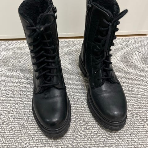 Mustat Andiamo talvikengät pehmeää nahkaa.