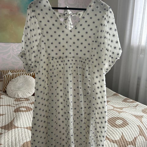 Ihana kevyt vaalean sininen juhlamekko, asuun kuuluu myös kevyt hartialiina.