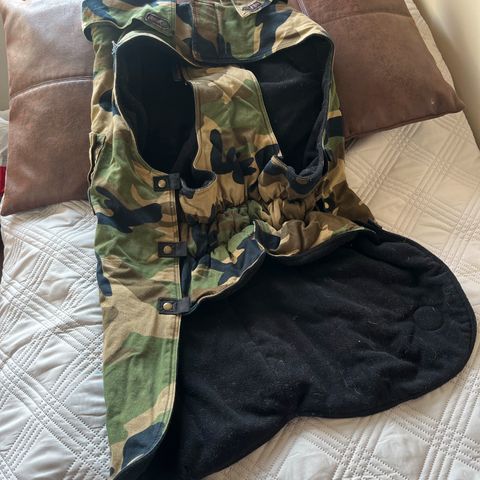 Käyttämätön, kerran päälle kokeiltu. Oma saksanpaimenkoira menehtyi eikä kerennyt käyttää takkia.