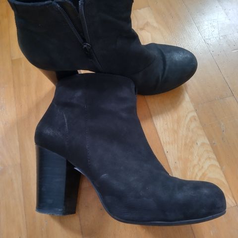 Myydään tolppakorkoiset nilkkurit, joissa kevyt vuori. Nahkaa. Toisen kengän kärjessä kulumaa, katso kuvat. Hyvässä kunnossa kulumaa lukuunottamatta.