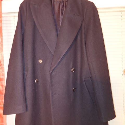 Myydään päällisinpuolin tosi siisti musta villakangastakki koossa L. Ainoa miinus on vuorikankaassa muutamas kohtaa ratkeemat. Parsimalla varsin saisi siistittyä. Sattuu linjassa sivusaumojen kohdalla helmassa. Ei estä takin käyttämistä eikä vaikuta ulkonäköön.