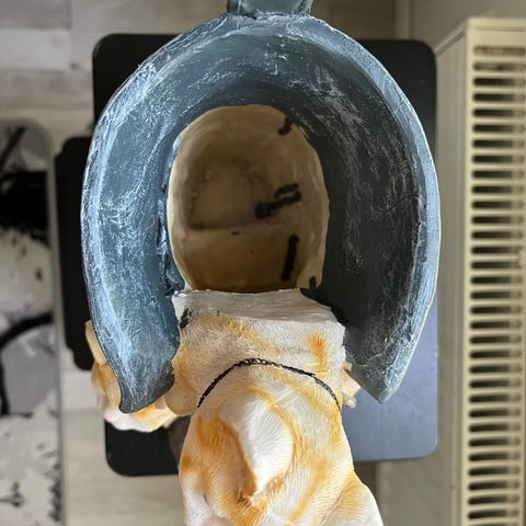 Seinään ripustettava posliininen kissanaamio. Käsin maalattu. Takana ripustus naru.