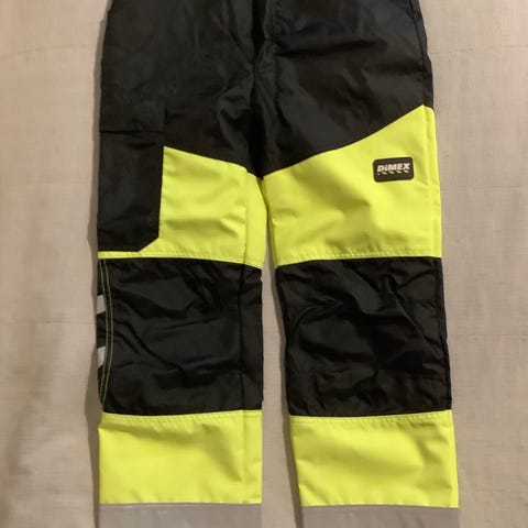 Tästä laadukkaat, erittäin hyvässä kunnossa olevat Dimexin kuoritakki ja -housut 140-senttiselle pikku työmiehelle. Takissa huppu.