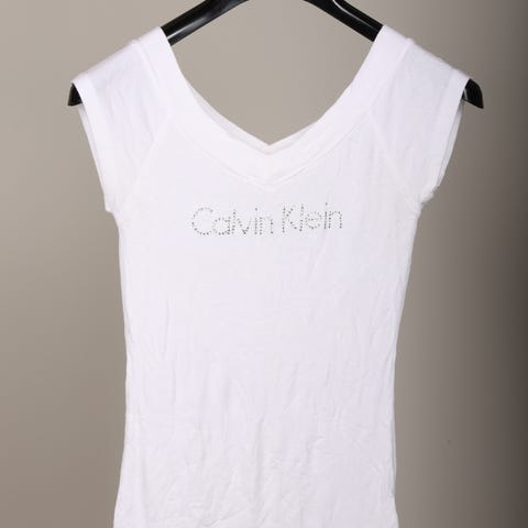 Naisten hihaton paita Calvin Klein. Mitat sopii M- kokoisille: Kainalo-kainalo 48 cm, Lantion ympärys 100 cm, Pituus 64 cm ( etupuolella laskeutuvan helman ansiosta pidempi). Materiaali näkyy kuvasta. Väri: tumman violetti. Alimmaisten kuvien väri kuvailee todellisen värin.
