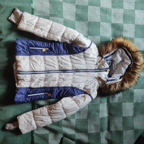 Kerran juhlissa käytetty toppatakki.