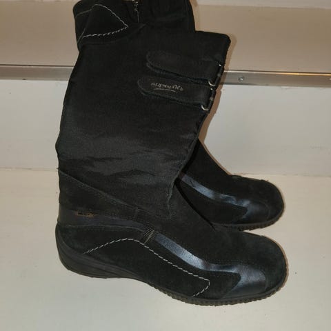 Mustat. Aitoa nahkaa/mokkanahkaa, kokonaan lämmin harmaa vuori, vetoketju. Superfit, Gore-Tex. Kokomerkintä 38, sisämitta mitattu 38 koon pohjallisella joka sopiva, 24.5cm. Erittäin vähän käytetyt siistit. Ei sovituksia ei toridiiliä. Nouto tarkka aika etukäteen sovitusti ma-pe kl.10-16 Hki 88 tai postitse pakettina.