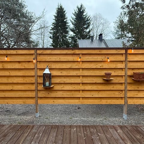 Noin kilometrin verran aitaa ja sisältää kaikki kiinnitystarvikkeet, kuten tolpat ja ruuvit.